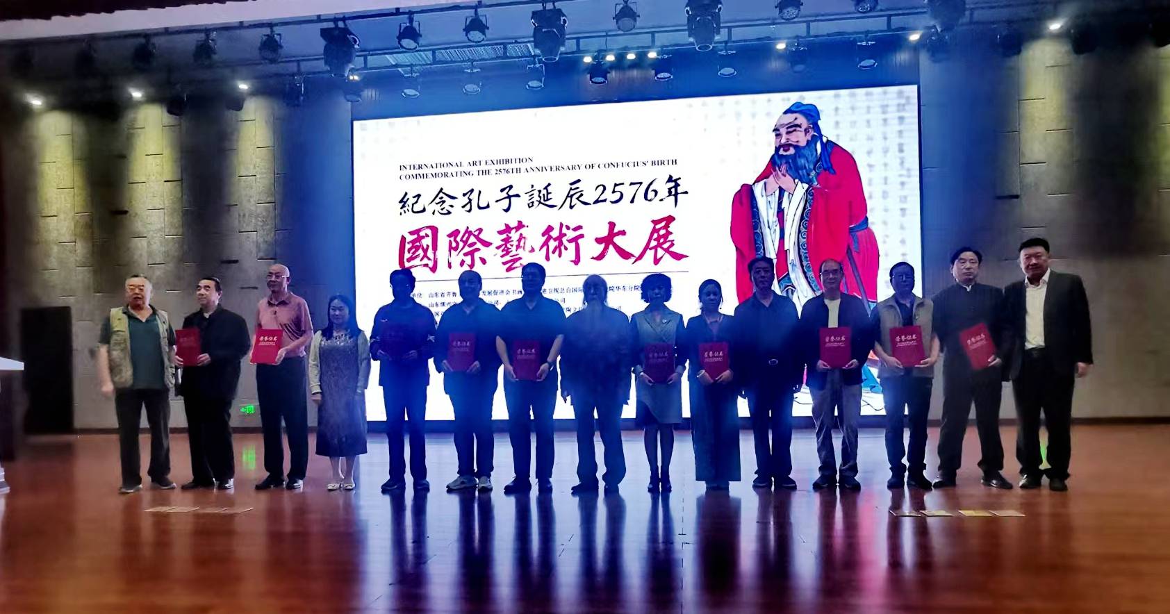 山东省菏泽军分区原政委、山东牡丹书画院院长、中国孔子书画研究院名誉院长宋新立,山东省齐鲁文化传承发展促进会艺术委员会书记兼书画院院长王占湖,香港卫视总台国际书画院常务副院长方爱琴,孔子七十三代嫡孙、中国孔子书画研究院院长孔庆旭,人民保健服务有限公司董事长、中国孔子书画研究院副院长马俊涛向金奖获得者代表:张大千再传弟子徐文清,大红袍画家窦凤展,齐百石再传弟子崔晓军,山东省齐鲁文化传承发展促进会副秘书长兼书画院常务副秘书长王丽丽,中国书法家协会会员、中国孔子书画研究院副院长范奉武,中国书法家协会会员、中国孔子书画研究院常务院长刘信庆,中国孔子书画研究院副院长 周末,中国孔子书画研究院副院长朱宗庭,中国孔子书画家协会副主席孙广林,中国孔子书画家协会副主席韩立海,中国孔子书画家协会副主席堵童芝,中国孔子书画家协会副主席杨华颁奖。