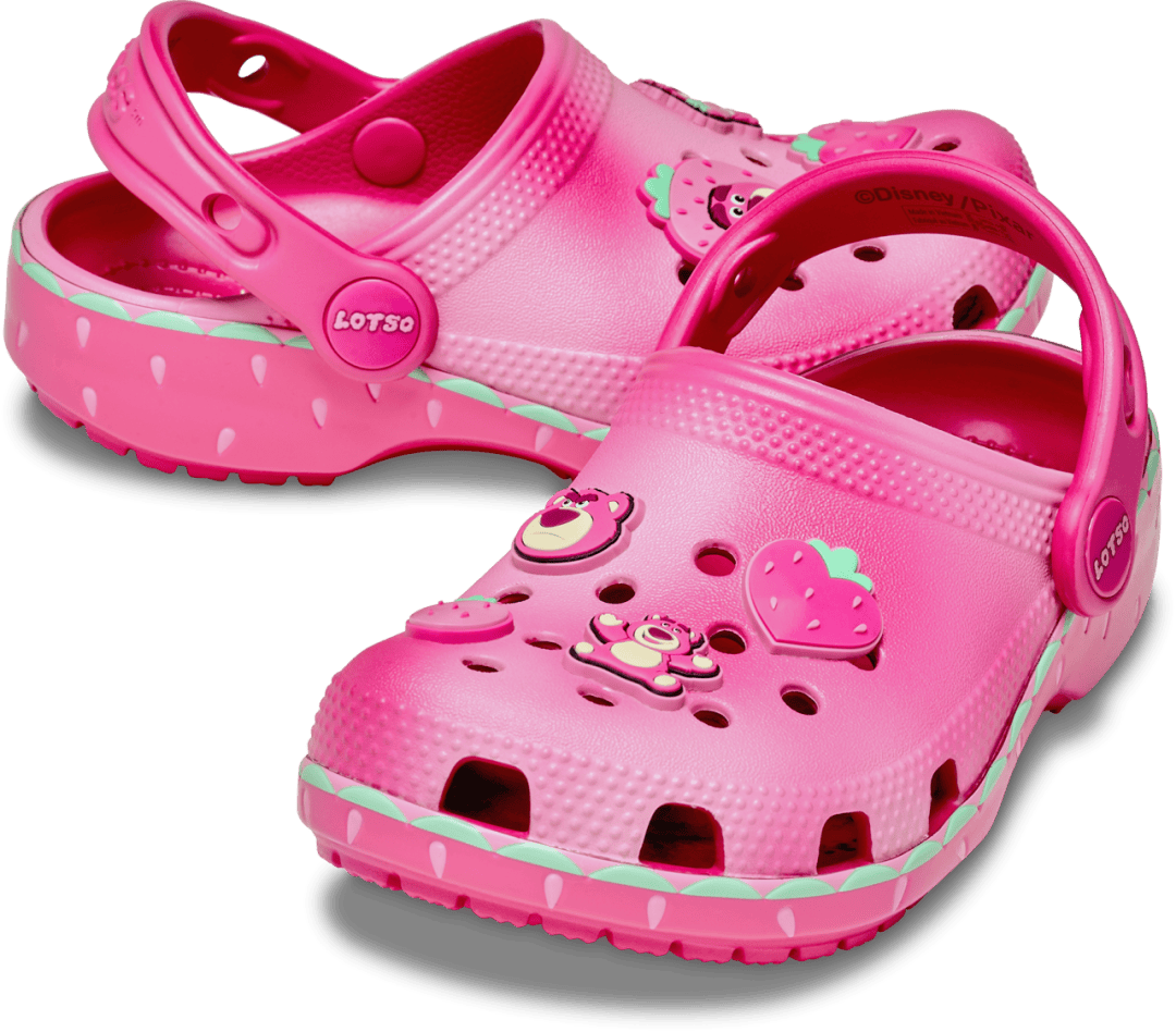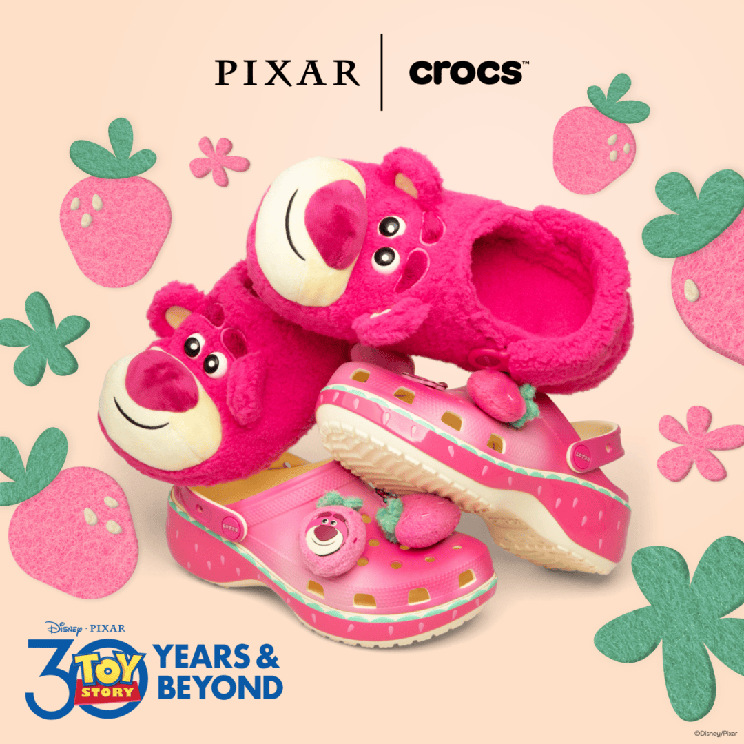 Crocs卡骆驰与迪士尼旗下经典IP《玩具总动员》惊喜联动,推出以人气角色草莓熊(Lotso)为主题的全新合作系列鞋款。正值《玩具总动员》30周年之际,该系列旨在让每一位粉丝重温故事中的感动与乐趣。