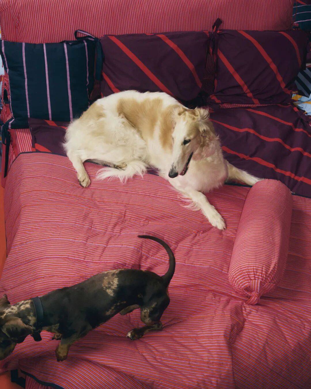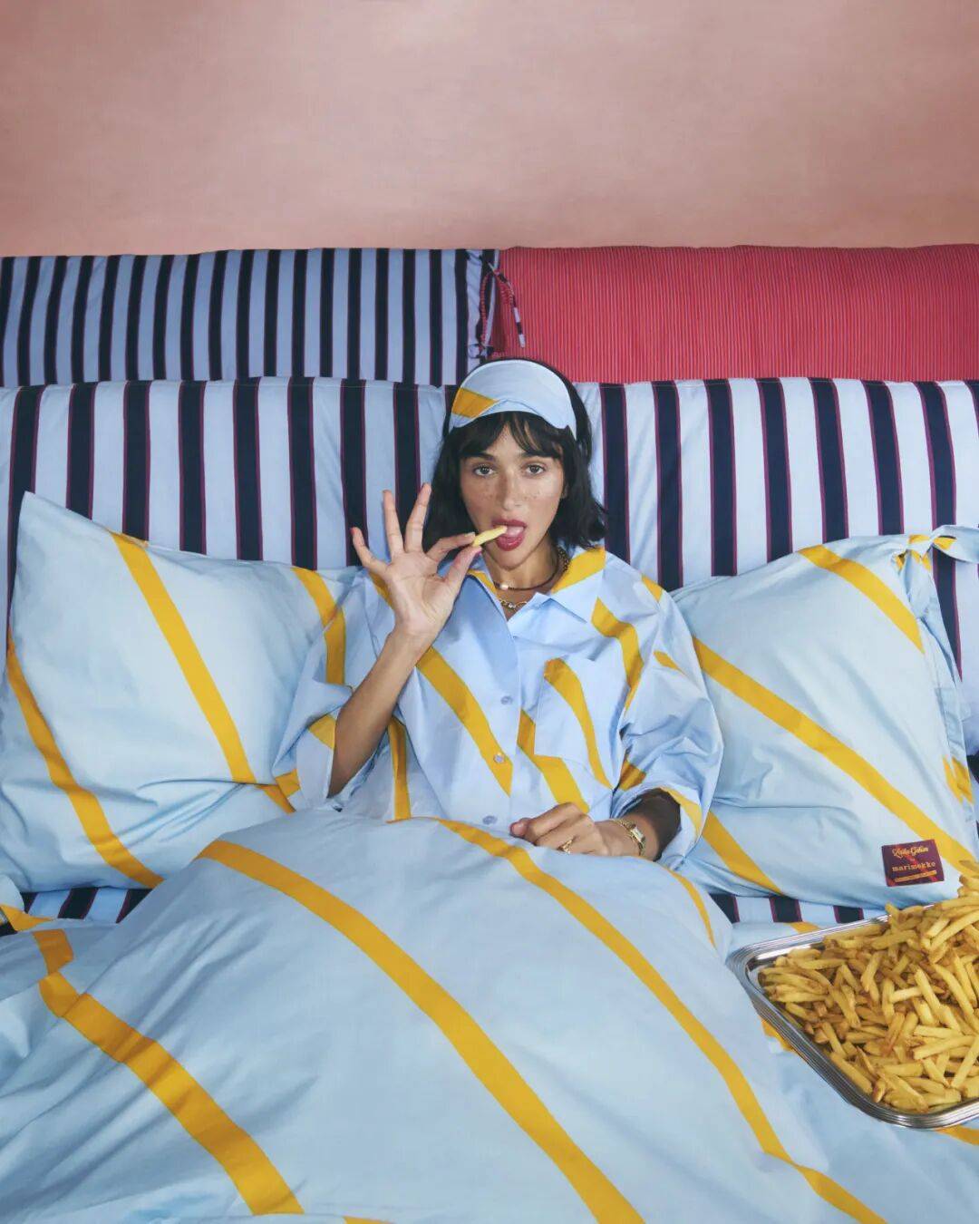 该胶囊系列从各种床上日常活动中汲取灵感,亦彰显Laila Gohar“只要熨烫妥帖,就能穿出门”的理念,囊括一系列由Laila专门设计的卧室主题单品,融入艺术家Maija Isola为Marimekko设计的醒目撞色经典条纹元素。亮点为“室内外皆可穿”的睡衣套装系列,其设计理念既体现Laila随性自在的生活艺术,同时契合Marimekko愉悦乐观的生活方式观念。