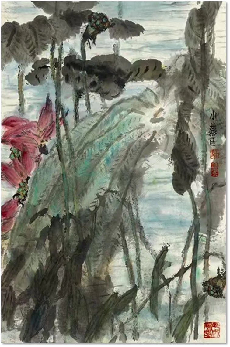 中国国家画院研究员、中央广播电视总台特聘艺术家、王子武艺术研究院院长王小燕作品《荷韵》参加此次展览。作品描绘夏日里的荷塘景色,同样是传统中国画题材,同样是传统中国画笔墨,这幅作品青出于蓝,给人出类拔萃的感觉。荷花出污泥而不染,象征着高尚的君子人格,也受到传统中国画家的喜爱。这幅《荷韵》荷干挺拔,荷叶婆娑,荷花妖娆,水面恬静,笔势强劲,用色自然,是画荷的代表作之一。