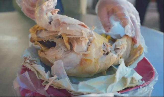 其三是烹饪方法,正宗的盐焗鸡,用粗盐腌制后裹上荷叶,埋进火山岩缝隙,借日光与岩温慢焗3小时。这种做法,不仅可以保留食材的鲜香,还多了一层干香。