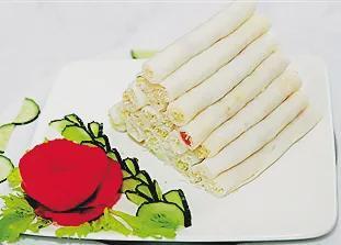 猪肠馍是儋州市海头镇传统小吃,因形似猪肠得名,又称猪肠头,为儋州“十大小吃”之一 。其采用大米磨成浆加热蒸熟,将粉皮卷成长条,包裹椰丝、木瓜丝、花生等馅料,也可加入豆角。
