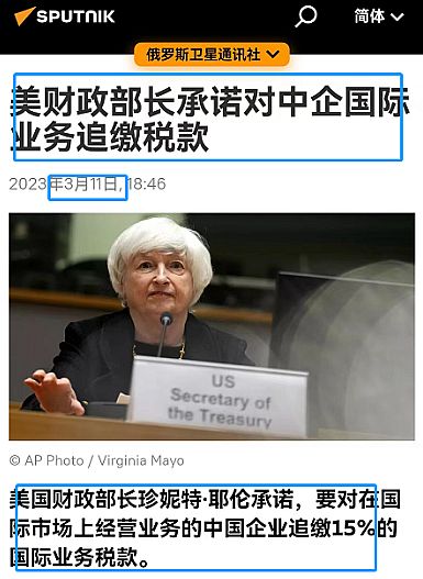新闻要联系来看才有意思。从美国“挪用”阿富汗救命钱,到冻结俄罗斯巨额资产,到偷窃中国援助叙利亚的应急救灾物资,再到要对中国企业追缴“莫须有”的“国际业务税款”,由此可见美国是真的穷疯了。现在硅谷银行爆雷、富国银行疑似爆雷更是让美国经济雪上加霜,以美国的一贯做派,一定会找人买单的,那么,找谁买单呢?个人建议要找就找潘总那样的,又有钱,又爱美国,这样的“韭菜”不割简直没有天理,说不定割完韭菜,韭菜还说“谢谢”呢。
