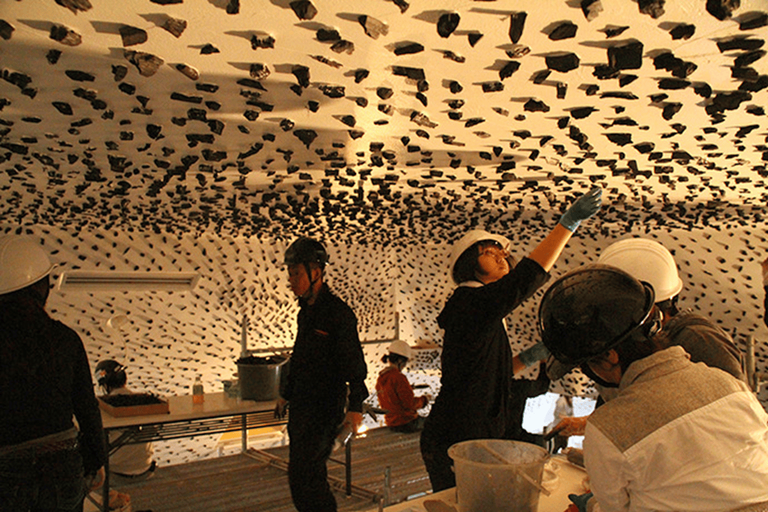 藤森照信认为木炭是有机物的最终形式。一方面把杉木的表面做烧焦处理可以防止杉木生潮发霉。另一方面木炭可无限期保持形态不变,这也是藤森照信在他众多作品中使用烧焦木材做材料的原因。主店的中部和中庭上部采用黑炭装饰。